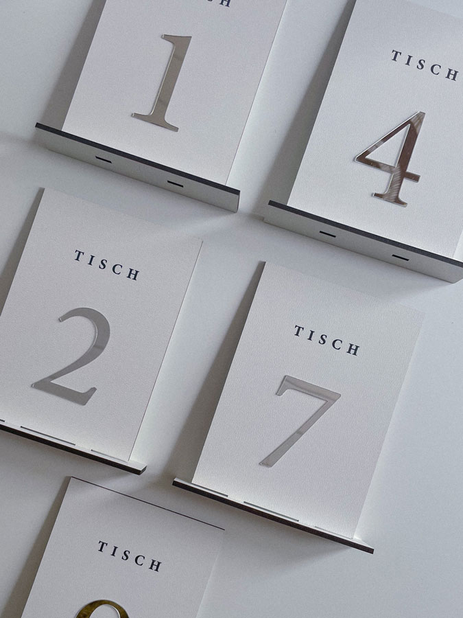 Schlichte und elegante Tischnummer aus Holz, weiß lackiert mit einer silbernen Zahl. Ideal für Hochzeiten, Geburtstage oder andere festliche Anlässe. Das zeitlose Design fügt sich harmonisch in jede Tischdekoration ein.