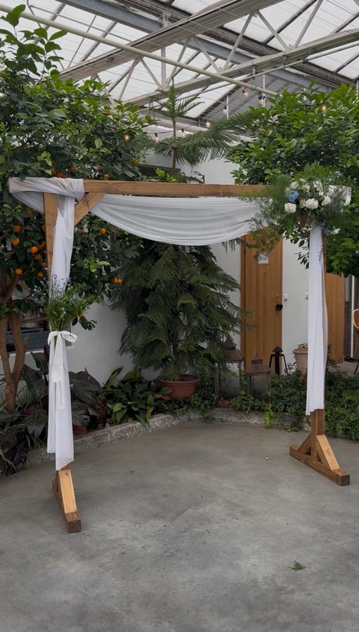 Was bei keinem Traubogen fehlen sollte? Ein fließendes Tuch – es bringt Leichtigkeit, Bewegung und eine romantische Note ins Setting.